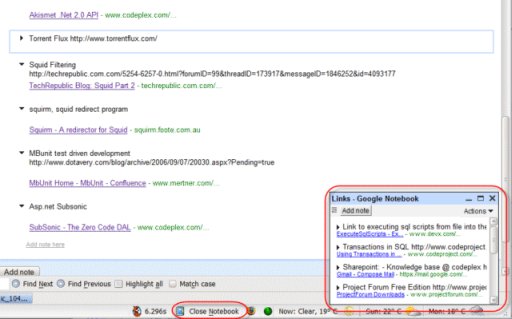 Google Notebook has been out for a while, but I just recently started using it. It’s really very handy if you want to keep track of ideas you have on a certain topic, or doing some research on a topic and want to save urls, and web content and want to access that from multiple places. Sometimes I want to save some work related links when I am surfing at home. Before I used to email them to my Gmail account, but now I save them in my Google Notebook.